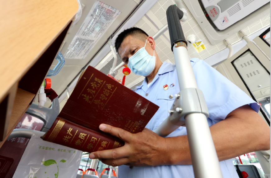 “歡迎您乘坐619路公交車,車廂內(nèi)的黨史書籍已消毒,可供閱讀瀏覽?!碧旖蚴泄患瘓F第二客運公司619路駕駛員回江濤在車廂內(nèi)設(shè)置了“黨史讀書角”,黨史書籍在乘客手中不斷被傳閱翻看,在墨香中感受黨史溫度,品味真理的味道,大家讀得津津有味、不忍釋卷。不少乘客還在車廂留言簿上飽含深情的寫下獻給黨的祝福,訴說著對黨的衷心祝愿和對祖國繁榮昌盛的美好期冀?!包h的百年華誕是人民群眾的盛大節(jié)日,我們希望用公交人最誠摯的方式迎慶節(jié)日,讓更多的市民乘客都能參與其中?!瘪{駛員回江濤說。