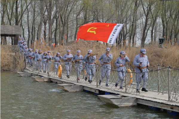 3月24日,作為系列黨日活動(dòng)的啟動(dòng)儀式,集團(tuán)勞動(dòng)模范代表、青旅酒店黨支部?jī)?yōu)秀黨員代表30余人率先“出征”,身著軍裝、手拿長(zhǎng)槍開啟了爬雪山、過草地的“紅軍長(zhǎng)征”?;顒?dòng)中,黨員勞模重溫入黨誓詞、集體朗誦毛主席詩詞《七律長(zhǎng)征》、合唱紅色歌曲,共同邁著鏗鏘有力的步伐,在互幫互助中沖破一道道“封鎖線”,行至遵義會(huì)議、飛奪瀘定橋等歷史節(jié)點(diǎn)時(shí),大家還席地而坐聆聽長(zhǎng)征故事。此外,活動(dòng)中還穿插了拔河比賽、闖關(guān)渡險(xiǎn)等體現(xiàn)團(tuán)結(jié)協(xié)作、攻堅(jiān)克難的拓展運(yùn)動(dòng),如此沉浸互動(dòng)式體驗(yàn),使得黨員勞模們無論從感官還是實(shí)踐中都深刻體會(huì)到長(zhǎng)征精神的內(nèi)涵所在。