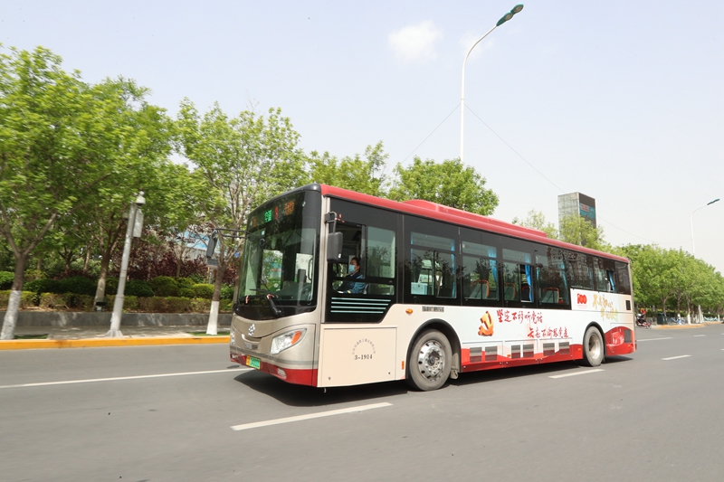 為慶祝中國共產(chǎn)黨成立100周年,“五一”小長假前夕,天津市公交集團(tuán)“慶祝中國共產(chǎn)黨成立100周年”主題車正式上路運(yùn)營。簡潔大方的背景和鮮艷的中國共產(chǎn)黨成立100周年慶祝活動標(biāo)識,在陽光的映照下格外醒目,為津城增添又一道靚麗的流動風(fēng)景線。