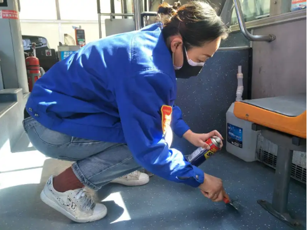 疫情防控期間,劉靖主動(dòng)遞交請(qǐng)戰(zhàn)書、主動(dòng)請(qǐng)戰(zhàn)運(yùn)送隔離人員、主動(dòng)深入中途重點(diǎn)站宣傳“津門戰(zhàn)役”使用方法……天氣逐漸轉(zhuǎn)暖,劉靖自費(fèi)購(gòu)買了火堿、洗衣粉、毛刷、鐵刷、扁鏟等物品,利用3個(gè)公休時(shí)間,為大家清理車箱死角和清洗車內(nèi)空調(diào)濾網(wǎng)。車廂內(nèi)的泡泡糖是最不容易清除的,有時(shí)用扁鏟鏟掉后污漬仍然留在地板上,她專門購(gòu)置了除膠劑進(jìn)行根除這種頑固污漬。雙手浸在冰涼的水中,洗刷著臟污的清潔濾網(wǎng),指甲上沾滿了黑污,她沒(méi)有怨言,她說(shuō):“看見(jiàn)車廂干凈整潔,為車隊(duì)、為同志們干點(diǎn)我力所能及的事,我的心里充滿了快樂(lè)”。